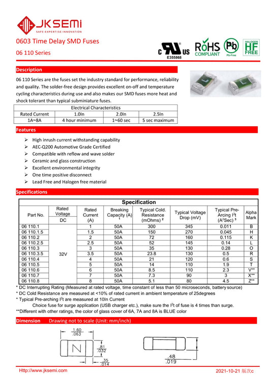 06 110.5 0603 32V 5A JKSEMI Time Delay SMD Fuses ETD11450