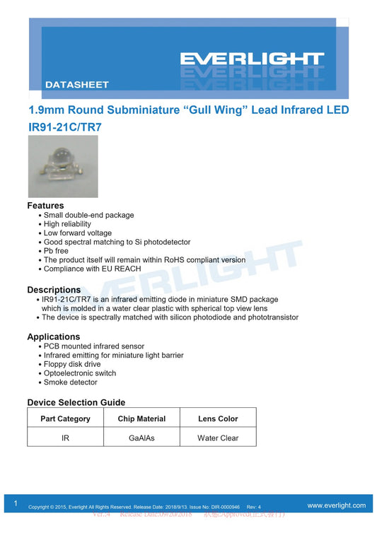 IR91-21C/TR7 SMD,2.5x2mm EVERLIGHT 940nm IR LED Emitters Infrared ETD11446