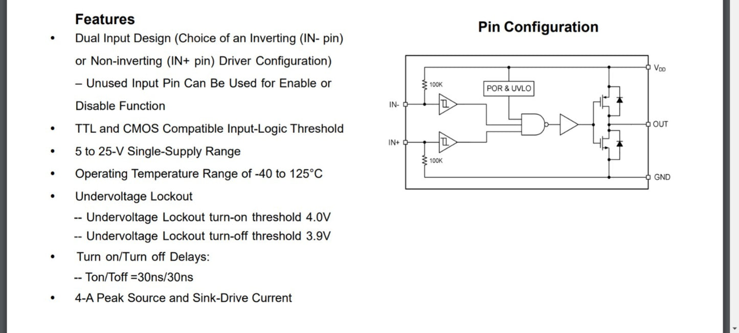 - 4A Single-Channel, Low-Side, Non-Inverting Gate Driver