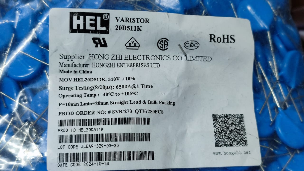 20D511k MOV 510V DC Pitch 10mm HEL 10% ETA2080