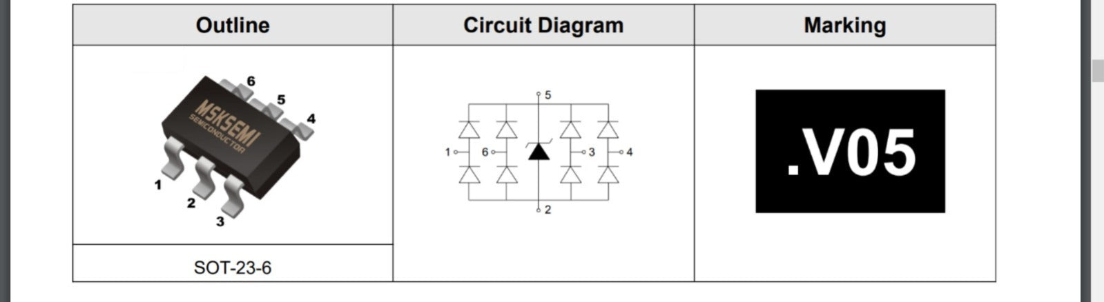 SRV05-4 SOT-23-6 MSKSEMI ESD V05 5V and Surge Protection TVS diode ARRAY A2050